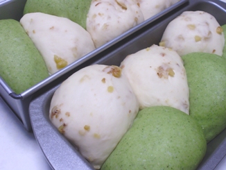 それから2種あるので作業が慌てないように、くるみ生地は手ごねで、よもぎ生地はホームベーカリーを